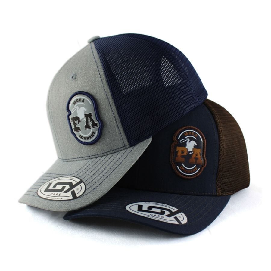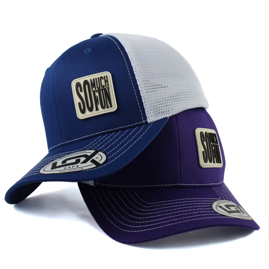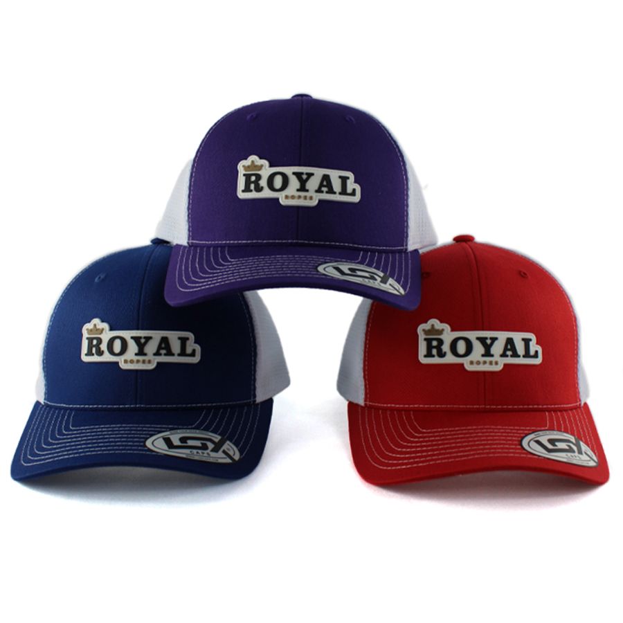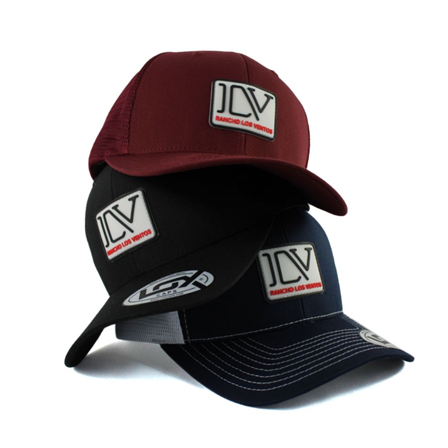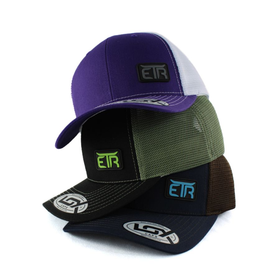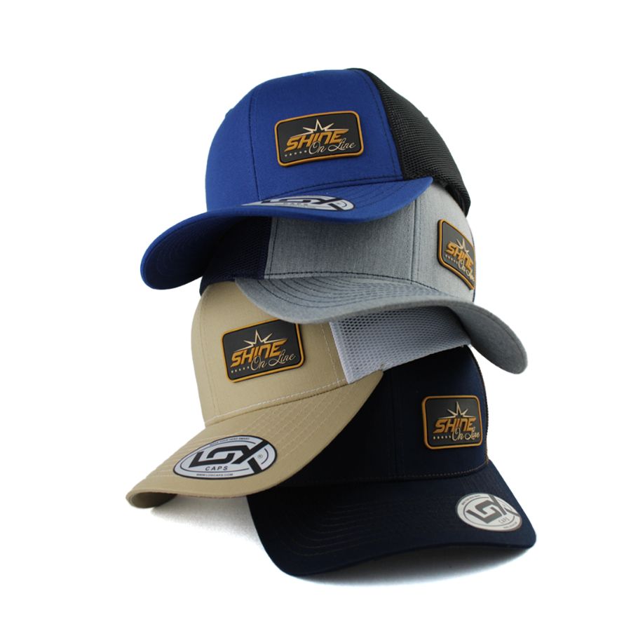 No processo de produção da etiqueta PVC, o molde é criado em alumínio, para ser esculpido na logo do cliente. A borracha líquida é injetada, resultando em uma etiqueta de alta definição, que é costurada manualmente nas extremidades do boné.