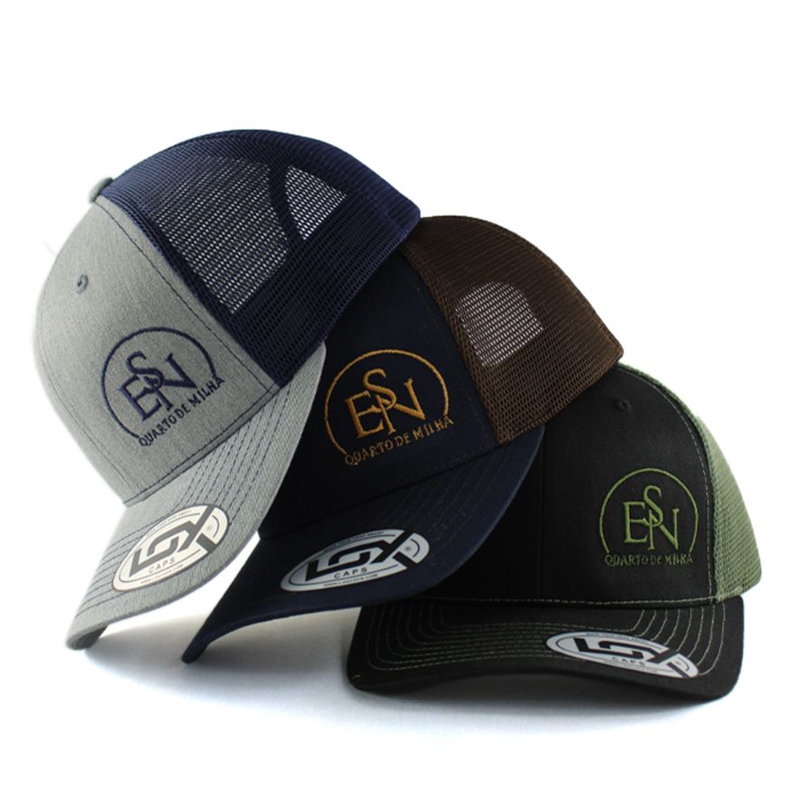 Com bordado aplicado diretamente no boné, oferecemos uma variedade nas cores de linhas, permitindo que o cliente escolha uma combinação que fique de acordo com a sua logo e o modelo escolhido.